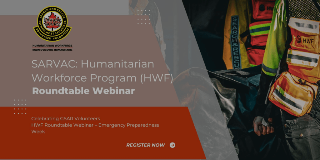 Join Us for a Special Roundtable Webinar Honouring GSAR Responders Across Canada In celebration of Emergency Preparedness Week, the Search and Rescue Volunteer Association of Canada (SARVAC) invites you to a dynamic roundtable webinar featuring volunteers from the SARVAC-Humanitarian Workforce (HWF) Program. This online panel will highlight the dedication and impact of Ground Search and Rescue (GSAR) responders who have answered the call during real-world emergencies—from last year’s Full Scale Exercise (FSX) in Ottawa to the wildfire evacuations in Labrador City![]() What to Expect: Firsthand accounts of deployment experiences Insights into the SARVAC HWF Program and its national impact. A deeper look at how GSAR volunteers contribute to Canada’s emergency response network. Whether you’re a current volunteer, considering joining, or simply passionate about emergency management and community resilience, this is a valuable opportunity to connect, learn, and be inspired. Stay tuned for our upcoming guest speaker announcement. Have a topic you’d like us to cover during the webinar? Send your suggestions to: socialmedia@sarvac.ca — we’d love to hear from you. Let’s celebrate the heart of SAR in Canada—our volunteers. MAY7th 7:00–08:15PM EST REGISTER NOW Learn More About the HWF Program: Watch last year’s info session and explore our YouTube playlist https://adventuresmart.us1.list-manage.com/track/click?u=e5cb478931a52f174bae095f8&id=5a7c1156de&e=618061b191 |