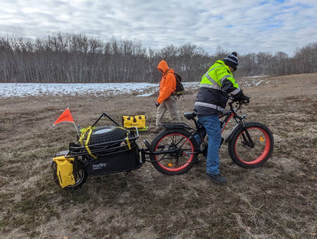 The team had the opportunity to support the Civil Air Search and Rescue Association (CASARA) team in Brandon conduct trials of their new drone. The exercise conducted around Camp Hughes ( South of Highway 1, near Carberry) has members of our team acting as lost individuals for the drone to attempt to locate. The exercise also allowed us to train with our new E-bikes and Mule to locate and transport casualties.